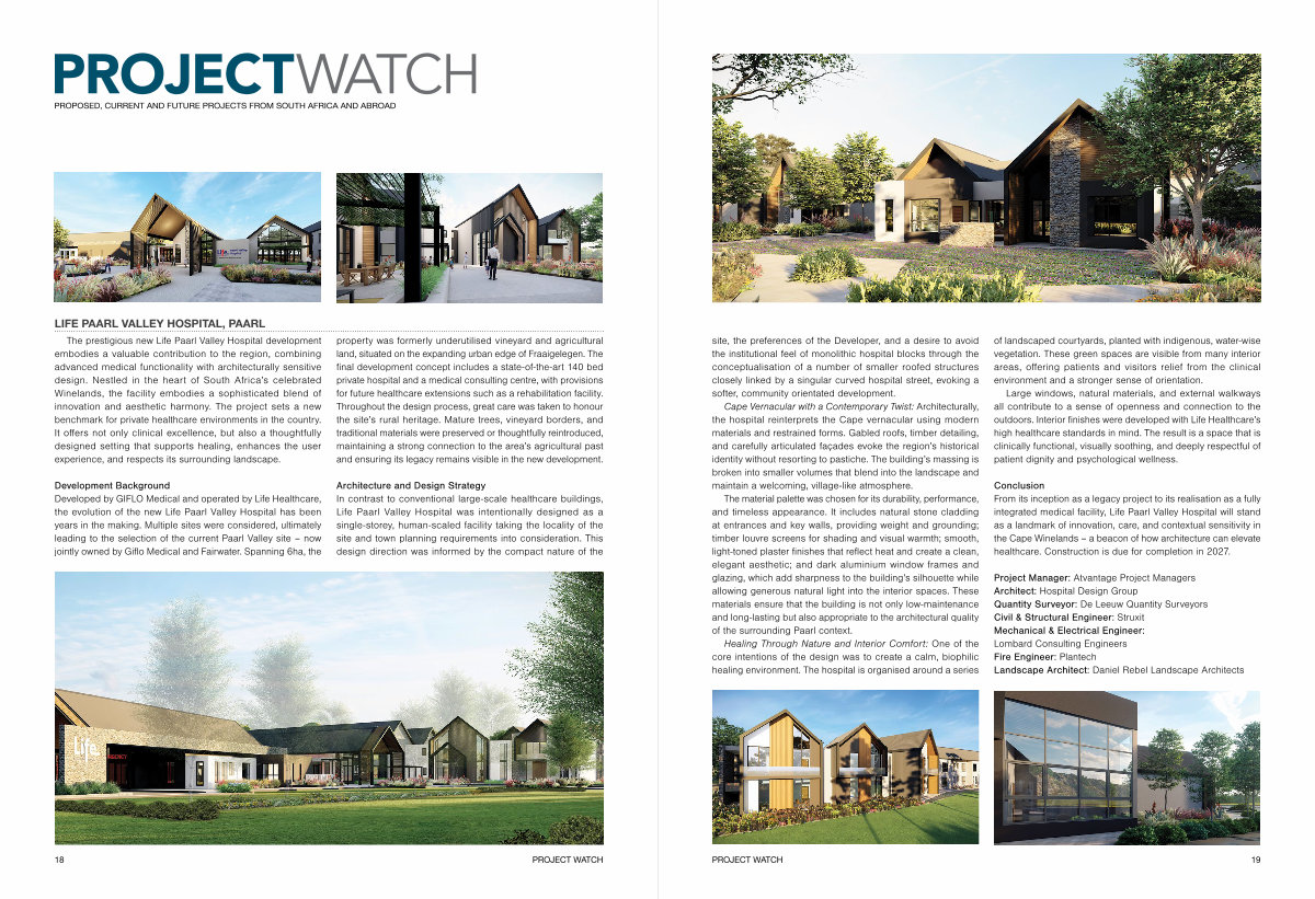 Conclusion From its inception as a legacy project to its realisation as a fully integrated medical facility, Life Paarl Valley Hospital will stand as a landmark of innovation, care, and contextual sensitivity in the Cape Winelands – a beacon of how architecture can elevate healthcare. Construction is due for completion in 2027.