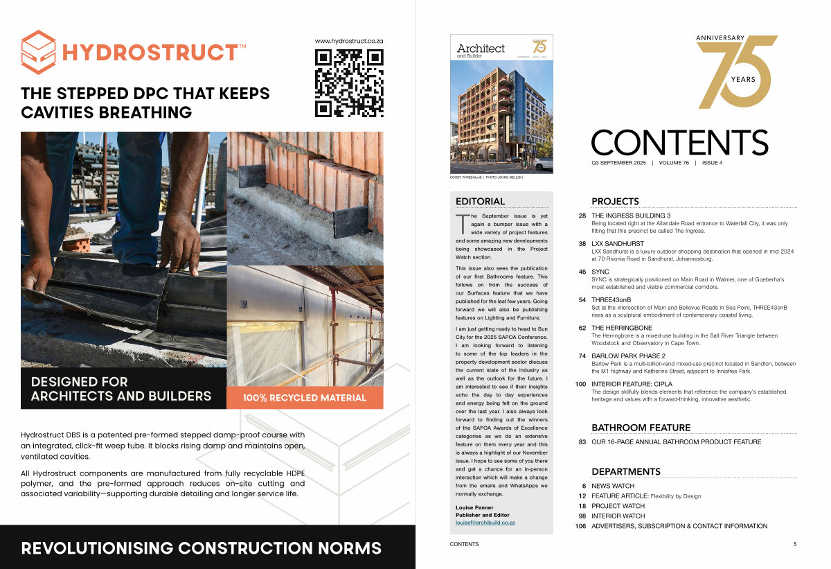 I am just getting ready to head to Sun City for the 2025 SAPOA Conference. I am looking forward to listening to some of the top leaders in the property development sector discuss the current state of the industry as well as the outlook for the future. I am interested to see if their insights echo the day to day experiences and energy being felt on the ground over the last year. I also always look forward to finding out the winners of the SAPOA Awards of Excellence categories as we do an extensive feature on them every year and this is always a highlight of our November issue. I hope to see some of you there and get a chance for an in-person interaction which will make a change from the emails and WhatsApps we normally exchange.