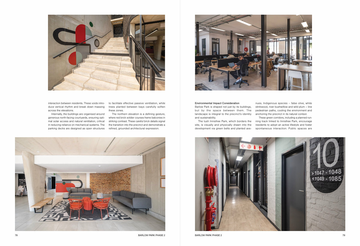Environmental Impact Consideration Barlow Park is shaped not just by its buildings, but by the space between them. The landscape is integral to the precinct’ s identity and sustainability.