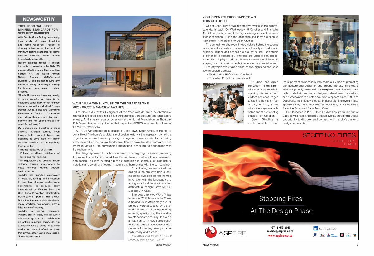 the support of its sponsors who share our vision of promoting architecture and design in and around the city. This year’ s edition is proudly presented by tile experts Ceramica, who have collaborated with architects, designers, developers, decorators, and homeowners to create covet-worthy spaces since 1993 and Decobella, the industry’ s leader in décor tile. The event is also sponsored by OWA, Modena Technologies, Lights by Linea, Selective Fans, and Cape Town Oaks.