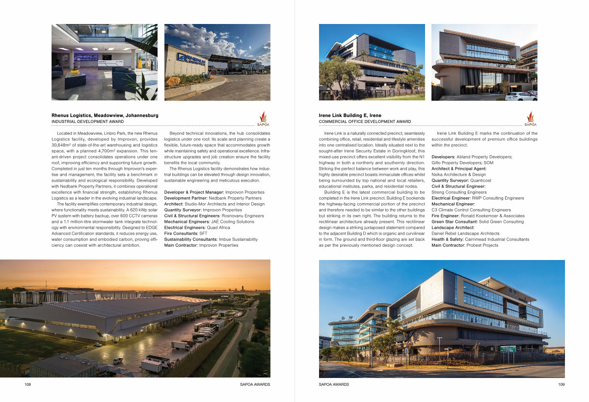 Developers: Abland Property Developers; Giflo Property Developers; SOM Architect & Principal Agent: Nsika Architecture & Design Quantity Surveyor: Quanticost Civil & Structural Engineer: Streng Consulting Engineers Electrical Engineer: RWP Consulting Engineers Mechanical Engineer: C3 Climate Control Consulting Engineers Fire Engineer: Ronald Koekemoer & Associates Green Star Consultant: Solid Green Consulting Landscape Architect: Daniel Rebel Landscape Architects Health & Safety: Cairnmead Industrial Consultants Main Contractor: Probest Projects