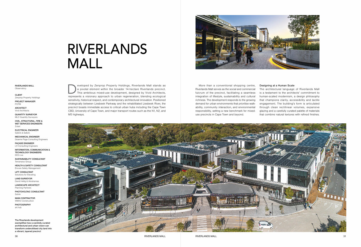 More than a conventional shopping centre, Riverlands Mall serves as the social and commercial fulcrum of the precinct, facilitating a seamless integration of lifestyle, sustainability and cultural richness. The development responds to the growing demand for urban environments that prioritise walkability, community interaction, and environmental responsibility, setting a new benchmark for mixeduse precincts in Cape Town and beyond.