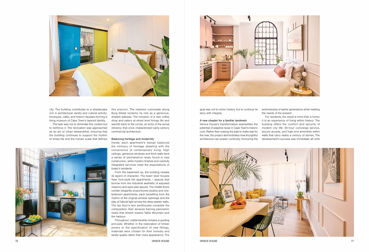 A new chapter for a familiar landmark Venice House’ s transformation exemplifies the potential of adaptive reuse in Cape Town’ s historic core. Rather than erasing the past to make way for the new, the project demonstrates how thoughtful architecture can sustain continuity, honouring the workmanship of earlier generations while meeting the needs of the present.