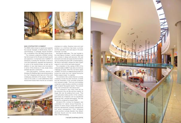 MAIN CONTRACTOR ’ S COMMENT The R600-million project to extend and upgrade the popular Eastgate in Bedfordview , East of Johannesburg , is complete , reports Grinaker- LTA , a subsidiary of the JSE-listed Aveng Group .