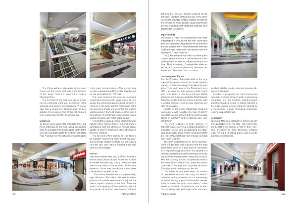 “ The interior finishes are of a high quality ,” says Pretorius . Porcelain tiles with polished granite infill panels were used throughout the mall in organic patterns on the floor . There are three courts leading off the entrances , with the tiling pattern of the court near the main entrance