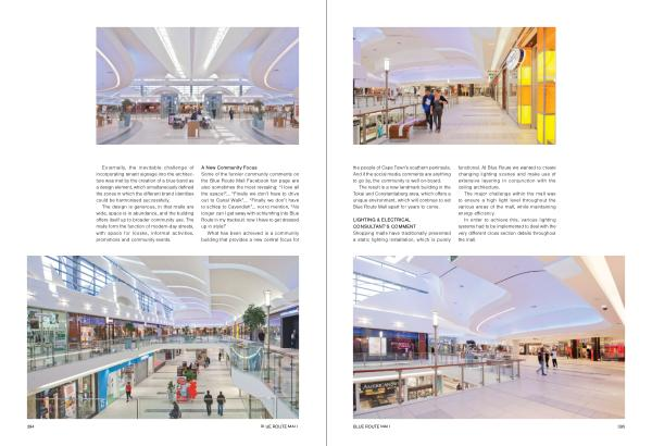 LIGHTING & ELECTRICAL CONSULTANT ’ S COMMENT Shopping malls have traditionally presented a static lighting installation , which is purely functional . At Blue Route we wanted to create changing lighting scenes and make use of extensive layering in conjunction with the ceiling architecture .