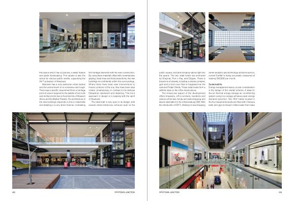 Sustainability Energy management was a crucial consideration in the design of the overall scheme . A state-ofthe-art thermal energy storage air conditioning system using ice storage achieves peak energy demand reduction . Two 76m 3 tanks located in the four basements levels are filled with Cristopia balls and glycol-infused chilled water that make