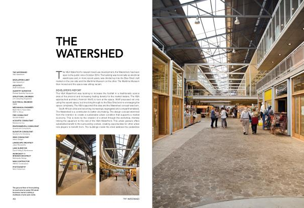 South African cities are becoming increasingly segregated and compartmentalised . The Watershed is a contribution to better city-making . The design concept stemmed from the intention to create a sustainable urban condition that supports a market economy . This is done by the creation of a street through the workshop , thereby linking the aquarium to the rest of the V & A Waterfront . This urban gesture offers substantial benefit to the surrounding context , creating opportunities for other urban role players to benefit from . The buildings inside the shed address the pedestrian