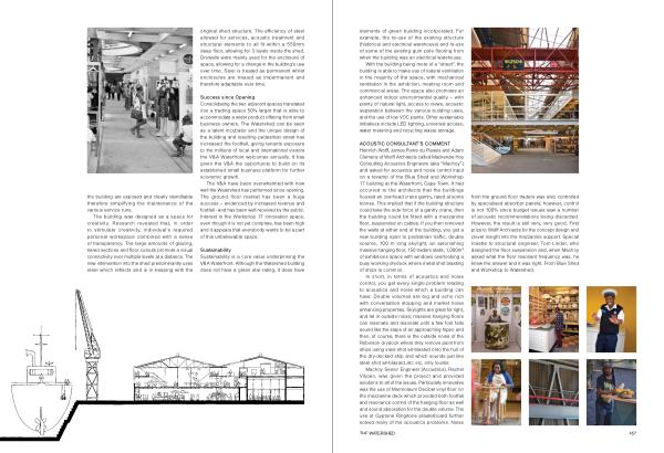 original shed structure . The efficiency of steel allowed for services , acoustic treatment and structural elements to all fit within a 550mm deep floor , allowing for 3 levels inside the shed . Drywalls were mainly used for the enclosure of space , allowing for a change in the building ’ s use over time . Steel is treated as permanent whilst enclosures are treated as impermanent and therefore adaptable over time .