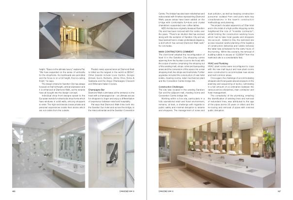 The project ’ s location adjacent to a 5 Star hotel and in the midst of a high profile shopping centre heightened the role of “ invisible contractor ”, whilst limiting the construction working hours which had to take hotel guests and shoppers into account . Added to this , the restricted site access required careful planning of the logistics of construction deliveries and rubble removal ; the latter was scheduled for the early hours of the morning . Within this scenario , the removal of building rubble in excess of 12,000m 3 from this restricted site is a considerable feat .