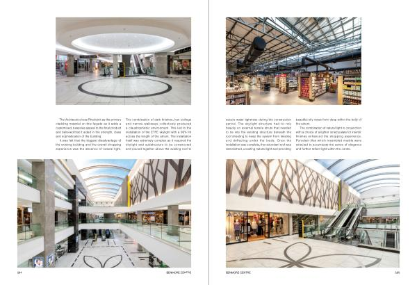 The combination of dark finishes , low ceilings and narrow walkways collectively produced a claustrophobic environment . This led to the installation of the ETFE skylight with a 90 % frit across the length of the atrium . The installation itself was extremely complex as it required the skylight and substructure to be constructed and pieced together above the existing roof to
