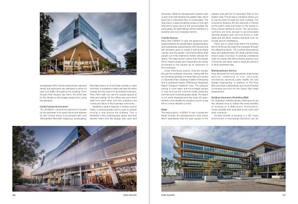 and glassed infills . Column placements , exposed ramps and staircases are optimised to allow for easy foot traffic throughout the building . Even though Park Square has them , the brief was for the design to discourage people from using the elevators .