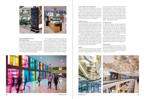 PUBLIC MINDED DETAILING Way-finding Design The addition of extra wings to the Fourway Mall plan resulted in the shape of a four emerging as the central organising principle . Four anchor tenants , Game , Woolworths , Checkers and the Food Court are located on the four edges of the four wings with the three floors between creating concourses and display areas with line shops and brand offerings connecting pathways .
