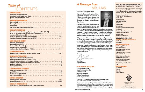 Career and College Specialist/Principals Contact Information . . . . . . . . . . . . . . . . . . . . . . 101