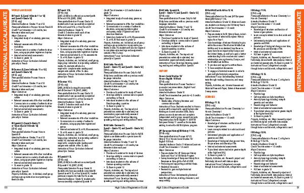 IB German SL [ Level 4-Grade 11 or 12 ] and [ Level 5-Grade 12 ] [ CPHS only ] Prerequisite / Selection Process: Honors German III Intended Audience: Grades 11 and 12 Credit: Four trimesters = 2.0 credits, two trimesters taken each year Major Outcomes: