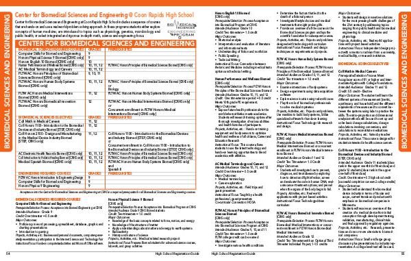 Acceptance into the Center for Biomedical Sciences and Engineering at CRHS is a required prerequisite for all Biomedical Sciences and Engineering courses.