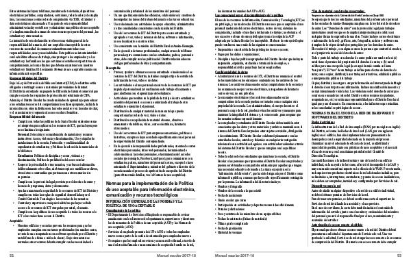 • Cumplir con las políticas de uso aceptable de todos los recursos de ICT a los cuales tiene acceso el Distrito.
