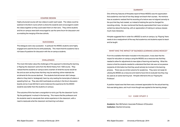 One of the key features of Himpeles report of these MOOCs was the appreciation
