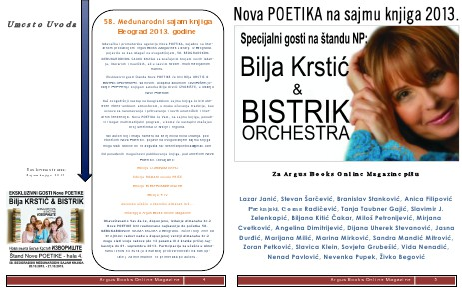 Izdava?ka i promoterska agencija Nova POETIKA, zajedno sa literarnom produkcijom Argus Books&Magazines Library, iz Beograda,