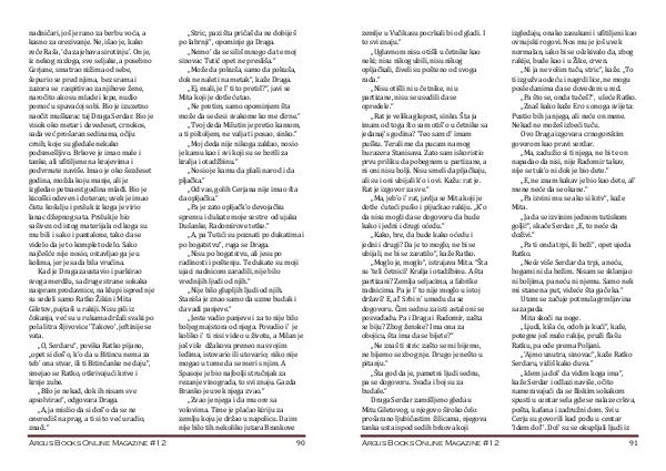nadničari, još je rano za berbu voća, a kasno za orezivanje. Ne, išao je, kako reče Raša, ' da zajebava sirotinju '. On je, iz nekog razloga, sve seljake, a posebno Cerjane, smatrao nižima od sebe, šepurio se pred njima, bez srama i zazora se raspitivao za njihove žene, naročito ako su mlade i lepe, nudio pomoć u spavaćoj sobi. Bio je izuzetno naočit muškarac taj Draga Serdar. Bio je visok oko metar i devedeset, crnokos, sada već prošaran sedinama, očiju crnih, koje su gledale nekako podsmešljivo. Brkove je imao male i tanke, ali ufitiljene na krajevima i podvrnute naviše. Imao je oko šezdeset godina, možda koju manje, ali je izgledao petnaest godina mlađi. Bio je kicoški odeven i doteran; uvek je imao čistu košulju i prsluk iz koga je virio lanac džepnog sata. Prsluk je bio sašiven od istog materijala od koga su mu bili i sako i pantalone, tako da se videlo da je to komplet odelo. Sako najčešće nije nosio, ostavljao ga je u kolima, jer je sada bila vrućina.