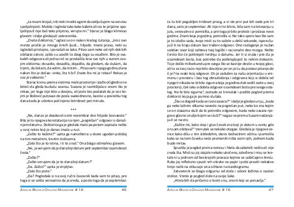 „ Ne, danas je dvadeset osmi novembar dve hiljade šesnaeste.“ Bila je to njegova konstatacija na njen „ pogrešan“ odgovor o današnjem datumu. Doktorica ga je gledala malo pa potom zapisala nešto u svoj notes koji je danas imala u ruci.