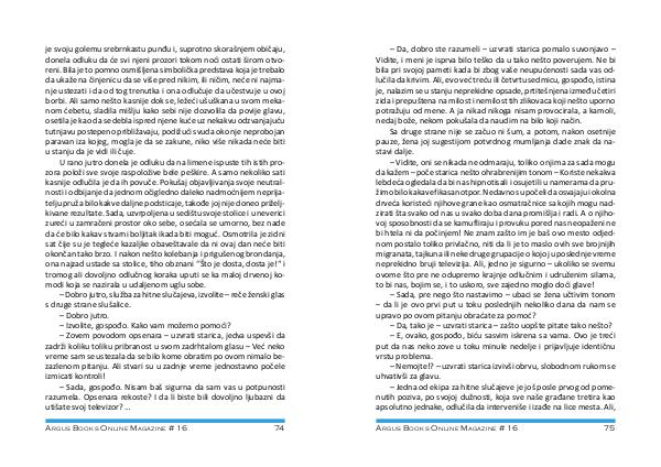 – Da, dobro ste razumeli – uzvrati starica pomalo suvonjavo – Vidite, i meni je isprva bilo teško da u tako nešto poverujem. Ne bi bila pri svojoj pameti kada bi zbog vaše neupućenosti sada vas odlučila da krivim. Ali, evo već treću ili četvrtu sedmicu, gospođo, istina je, nalazim se u stanju neprekidne opsade, prtitešnjena između četiri zida i prepuštena na milost i nemilost tih zlikovaca koji nešto uporno potražuju od mene. A ja nikad nikoga nisam provocirala, a kamoli, nedaj bože, nekom pokušala da naudim na bilo koji način.