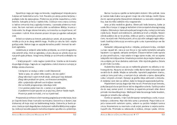 Popodnevni san joj dugo nije htio na oči. Prevrtala se po krevetu, pokušavajući da se sjeti što se točno dogodilo na brdu. Tješila je sebe da će ovaj zamor proći. U mislima je započela prizivati slike divne prirode moslavačkog kraja. Maštajući kako bosonoga hoda livadom, zaspala je između dva udisaja.