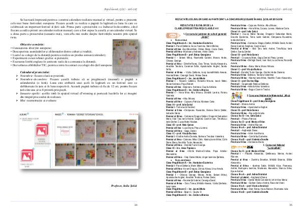Clasa a II-a D – prof. Monica Vîrlan Premiul I – Plăcintă Alexandra, Ștefănescu Marina, Andrei Răzvan; Premiul al II-lea – Dumitriu Beatrice, Mihăilă Brianna, Bîlbîe Alexandru; Premiul al III-lea – Apetrea Sabin, Mihăilă Alice, Poenescu Andrei, Burdujanu Iasmina, Munteanu Alexandra, Stanciu Erika, Epure Andrei. Clasa a III-a A – prof. Adina Stratulat Premiul I și tabără – Angheluță Diana; Premiul al II-lea – Danila Matei Constantin, Ichim Ana Maria; Premiul al III-lea – Galben Darius Andrei, Racovita Viorel. Clasa a IV-a A – prof. Viorica Amăricăi Premiul al III-lea – Stan Rareș, Hazu Răzvan, Munteanu Iulia. Clasa a IV-a B – prof. Gabriela Dorofte