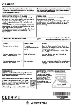 • Clean the glass in the door with a suitable liquid