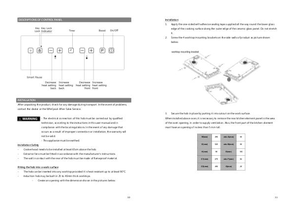 When installed above oven, it is necessary to remove the rear kitchen element panel in the area