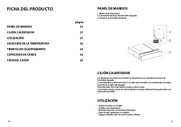 Los elementos de control son el mando de temperatura y el conmutador luminoso de