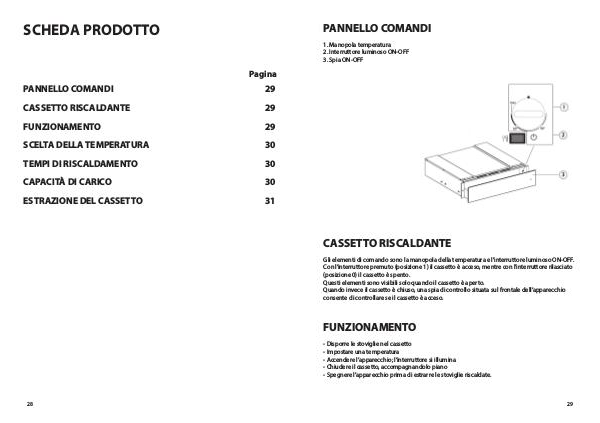 Gli elementi di comando sono la manopola della temperatura e l’interruttore luminoso ON-OFF.