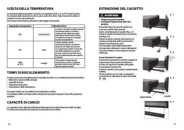 Si ricorda che il cassetto può sostenere un peso massimo di 25 Kg.