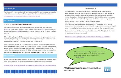 Recordkeeping Principles® (the Principles), are grounded in practical experience