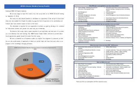 as a true takeaway from each meeting. Your ARMA Arizona Chapter leaders will work to provide educational opportunities geared toward the results from this survey.