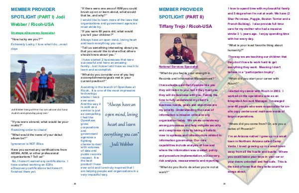 MEMBER PROVIDER SPOTLIGHT( PART I) Jodi Webber / Ricoh-USA