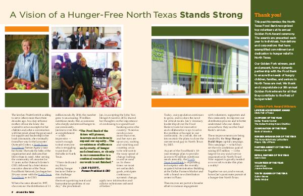 The late Jan Pruitt first felt a calling to serve others more than three decades ago. As a stay-at-home mother of four she knew she wanted to set an example for her children and, after a conversation with her priest about the great need for support and leadership in her local community, she eventually found her way to the Lancaster Outreach Center, a North Texas Food Bank Partner Agency near her home. She took the helm of the organization and dedicated her life to those in need. After serving the community of Lancaster for 11 years as the Outreach Center’ s CEO, followed by a brief stint as executive director of the Texas Food Bank Network, Jan began her 20-year career with the North Texas Food Bank as its CEO.