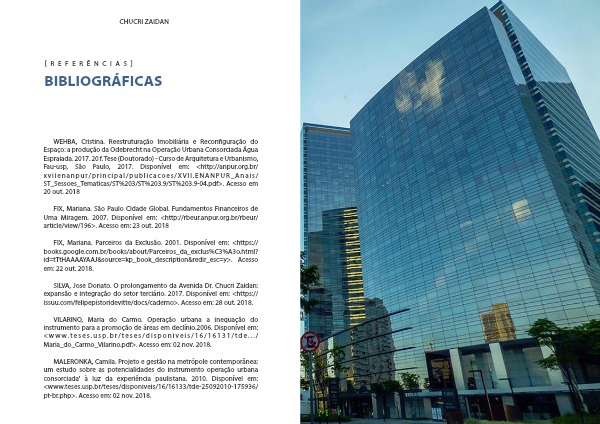 WEHBA, Cristina. Reestruturação Imobiliária e Reconfiguração do Espaço: a produção da Odebrecht na Operação Urbana Consorciada Água Espraiada. 2017. 20 f. Tese (Doutorado) - Curso de Arquitetura e Urbanismo, Fau-usp, São Paulo, 2017. Disponível em: <http://anpur.org.br/xviienanpur/principal/publicacoes/XVII.ENANPUR_Anais/ST_Sessoes_Tematicas/ST%203/ST%203.9/ST%203.9-04.pdf>. Acesso em 20 out. 2018