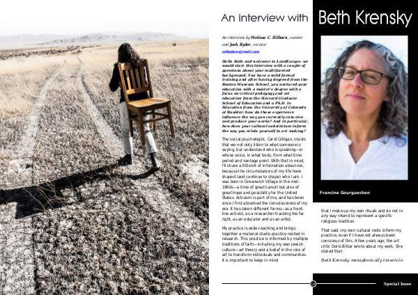 Hello Beth and welcome to LandEscape: we would start this interview with a couple of questions about your multifaceted background. You have a solid formal training and after having degreed from the Boston Museum School, you nurtured your education with a master’ s degree with a focus on critical pedagogy and art education from the Harvard Graduate School of Education and a Ph. D. in Education from the University of Colorado at Boulder: how do these experience influence the way you currently conceive and produce your works? And in particular, how does your cultural substratum inform the way you relate yourself to art making?