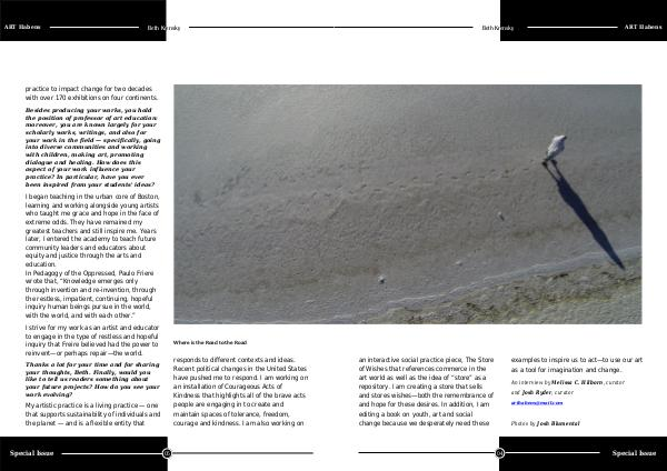 Besides producing your works, you hold the position of professor of art education: moreover, you are known largely for your scholarly works, writings, and also for your work in the field— specifically, going into diverse communities and working with children, making art, promoting dialogue and healing. How does this aspect of your work influence your practice? In particular, have you ever been inspired from your students ' ideas?