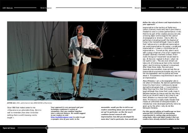 About Mistakes: I am a choreographer who is not afraid of mistakes. My dancers( performers) know it by heart since I continuously repeat during the rehearsals that: « I love mistakes ». When they hear this, their first reaction is to laugh although they know that I really mean it. Mistakes happen by chance and the only thing that you as an artist need to do is how to use them. Mistake is a miracle itself if perfectly done. The worse is a badly made mistake that means an unfinished or betrayed mistake. A mistake has to be developed perfectly not to be given up by the artist. I only do not like betrayed mistakes.