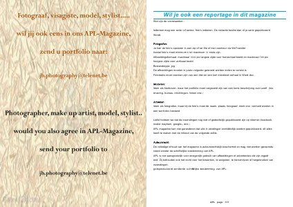 De volledige inhoud van het magazine is auteursrechtelijk beschermd en mag niet worden gereproduceerd zonder de schriftelijke toestemming van APL. APL is niet aansprakelijk voor oneigenlijk gebruik van afbeeldingen of advertenties die zijn ingediend. Zij behouden ook het recht voor het bewerken, te weigeren, te herschrijven of hergebruiken van inzendingen. gereproduceerd zonderde schrift lijke t est mming van APL. e o e