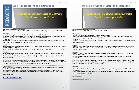 maken met de inhoud van de volgende editie. le portfolio, reeksen, reportages en losse foto’s mogen niet door