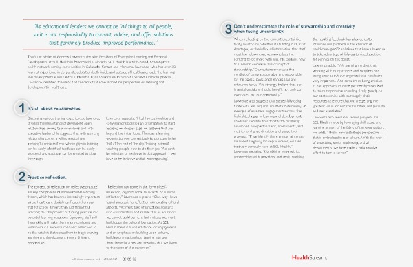 and development efforts for SCL Health’s 17,000 associates. In a recent Second Opinions podcast,