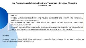 Rule 10 : Societal and environmental wellbeing including sustainability and environmental friendliness , social impact , society , and democracy Sürdürülebilirlik ve çevre dostu olma , sosyal etki , toplum ve demokrasi dahil olmak üzere toplumsal ve çevresel refah Κοινωνική και περιβαλλοντική ευημερία , συμπεριλαμβανομένης της αειφορίας και της φιλικότητας προς το περιβάλλον , του κοινωνικού αντίκτυπου , της κοινωνίας και της δημοκρατίας