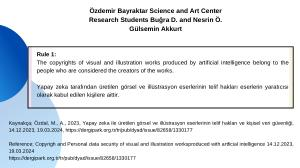 Reference ; Copyrigh and Personal data security of visual and illustration worksproduced with artficial intelligence 14.12.2023 , 19.03.2024 https :// dergipark . org . tr / tr / pub / dyad / issue / 82658 / 1330177