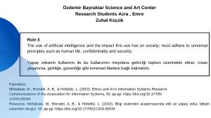 Kaynakça ; Mirbabaie , M ., Brendel , A . B ., & Hofeditz , L . ( 2022 ). Ethics and AI in Information Systems Research . Communications of the Association for Information Systems , 50 , pp-pp . https :// doi . org / 10.17705 / 1CAIS . 05034 Resource ; Mirbabaie , M ., Brendel , A . B ., & Hofeditz , L . ( 2022 ). Bilgi sistemleri araştırmasında etik ve yapay zeka , bilişim sistemleri dergisi 50 , pp-pp . https :// doi . org / 10.17705 / 1CAIS . 05034