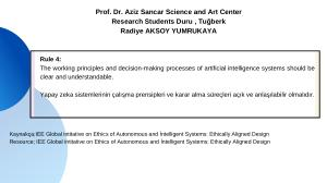 Yapay zeka sistemlerinin çalışma prensipleri ve karar alma süreçleri açık ve anlaşılabilir olmalıdır .