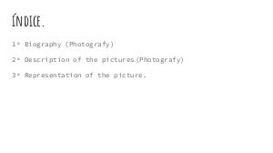 índice. 1ª Biography (Photografy) 2ª Description of the pictures . (Photografy) 3ª Representation of the picture.