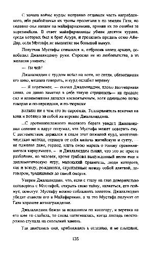 ... С противоположного высокого берега увидел Джалалиддин селение и вдруг подумал, что Мустафа может поверить ему. С достоинством держался в седле этот пожилой курд, многозначительно молчал, отринув от себя мелочь житейскую и суету,— не пожелал даже, гордец, плеть свою марать о голову провинившегося караульного,— и Джалалиддин понял, что это не просто разбойник, но человек, кроме грабежа вынужденный вести еще и дипломатическую игру, маленький правитель, люди которого, как и всюду, рождаются, скрепленные между собой клятвой, договором, традициями до самой смерти.